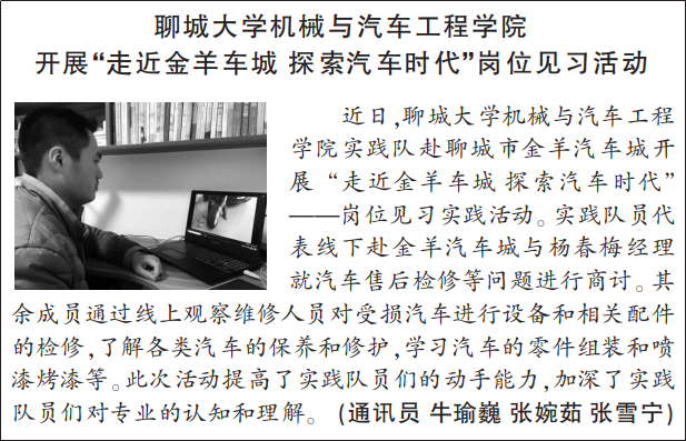 【山东青年报】报道ok138cn太阳集团古天乐开展“走近金羊车城,探索汽车时代”——赴聊城市金羊汽车城岗位见习实践活动