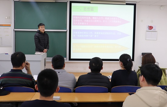 首先进行的是先进班集体的评选,2018级9班班长闫洪智分别从班级整体氛围,总体学习情况、活动情况和整体获奖情况进行班级展示,并在汇报结束后进行答辩,在座评委对他的汇报做了相应的点评并提出了指导性建议。随后进行的是优秀学生干部的个人汇报,被推举出来的候选人依次上台,就自己的学习情况、任职情况、获奖情况、特色优势和未来展望进行介绍,各评委就相关问题对上台竞选的候选人进行提问,指出他们答辩的不足之处,提出了中肯可行的建议并对他们在未来的工作学习方面寄予厚望。最后是优秀学生的评选,候选人上台分别从自己的学业成绩 、科创成果、获奖情况社会实践和志愿公益等方面介绍自己的优势,希望可以得到各位评委和学校的认可。
