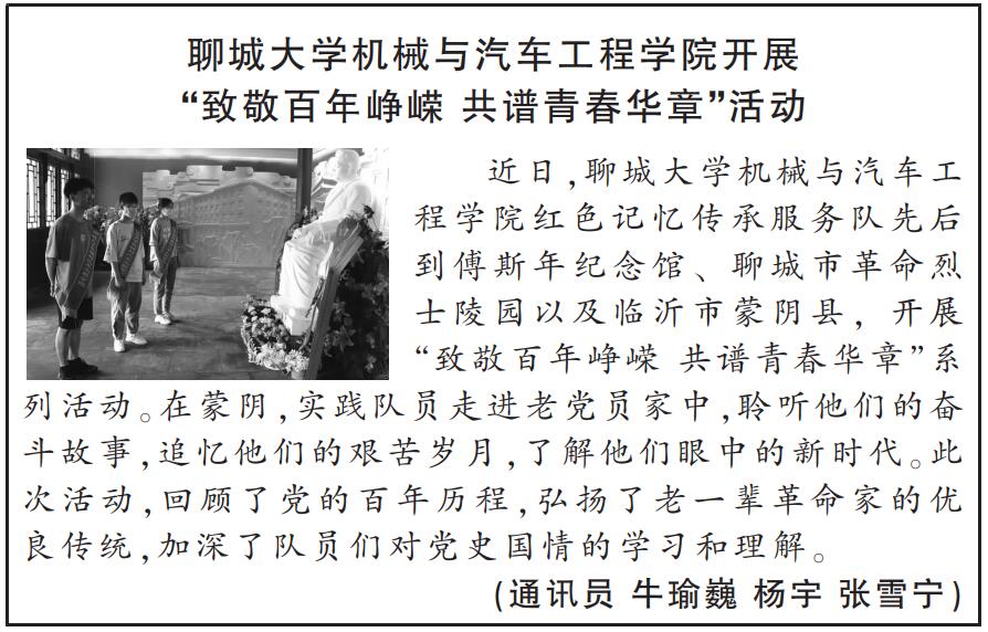 【山东青年报】报道我院开展“致敬百年峥嵘 共谱青春华章”活动