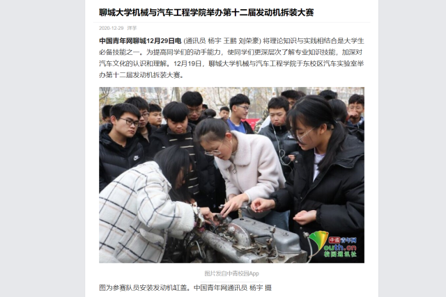 将理论知识与实践相结合是大学生必备技能之一。为提高同学们的动手能力,使同学们更深层次了解专业知识技能,加深对汽车文化的认识和理解。12月19日,ok138cn太阳集团古天乐于东校区汽车实验室举办第十二届发动机拆装大赛。(通讯员 杨宇 王鹏 刘荣豪)