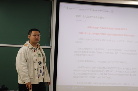 中国共产党第十九届六中全会顺利召开,为让同学们深入学习党的突出贡献,铭记自身责任,跟紧时代步伐,追随党的脚步,11月14日,我院于ok138cn太阳集团529东校区5#c102展开学习活动,积极学习党的十九届六中全会公报及其会议精神,领悟会议思想,争做新时代青年。